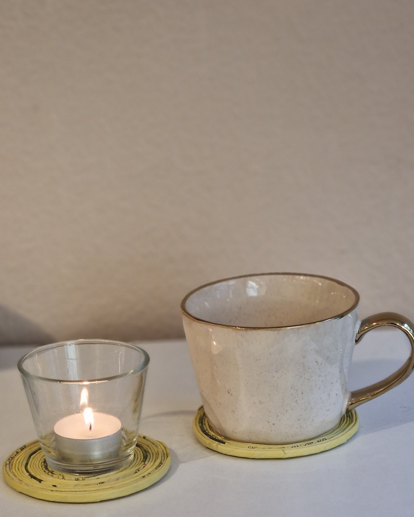Nachhaltig produziert aus Zeitungen, in tollen Farben und wasserfest durch eine spezielle Lackierung, ist dieser Untersetzer der perfekte Begleiter für deine Tasse Tee.