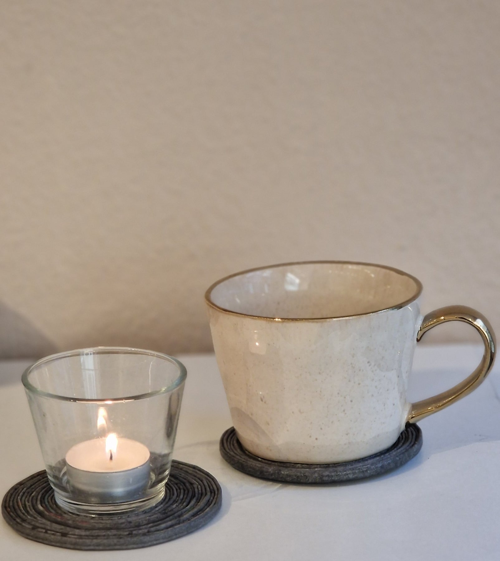 Nachhaltig produziert aus Zeitungen, in tollen Farben und wasserfest durch eine spezielle Lackierung, ist dieser Untersetzer der perfekte Begleiter für deine Tasse Tee.