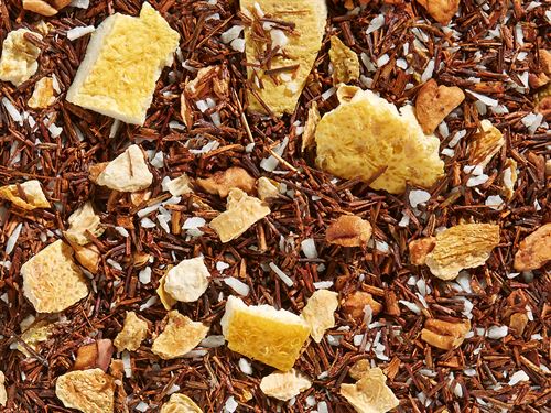 Rotbuschtee, Kokosraspeln, Zitronenschalen, Apfelstücke, Aroma, gefr.-getr. Zitronenschalen